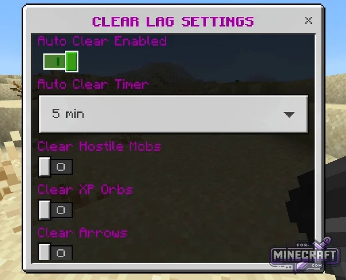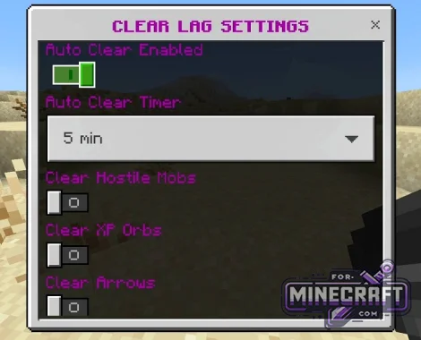 Unlike other memory clearing scripts in Bedrock Edition, this one allows you to finely select targets for removal. The admin can separately enable or disable clearing:
