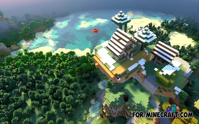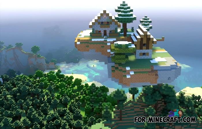 Have you ever seen a village floating in the sky? Literally this tiny village is perched on a small dirt island high above the ground. It doesn't quite touch the clouds, but it's definitely high enough that you'll need to jump to it or build a small bridge. The best way to reach it is by air transport, like the one from the Simple Vehicles Addon.