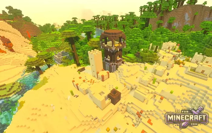 For Bedrock Edition, useful structures are located around the edges of the ring. Nearby you can find a village, a bandit outpost, a destroyed portal, and a jungle temple; once you are ready head there to recieve some extra loot.