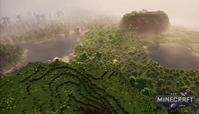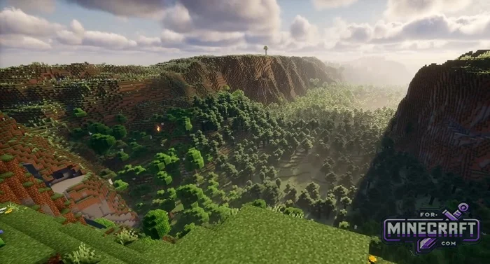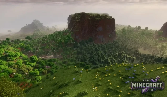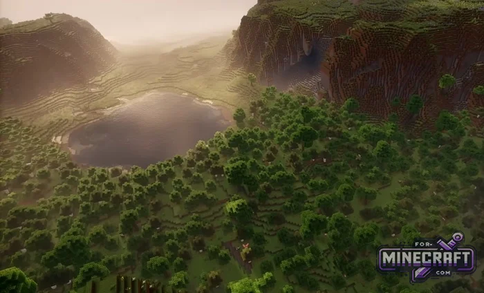 Seeds with flat plains in Bedrock Edition 26 are boring. Seeds with mountains are beautiful, but inconvenient to build on. This seed is somewhere in between: a large plateau with a flat top, a forest below and lakes nearby. Everything is already in place, all that's left is to build. You start the game on a huge flat plateau that towers over the forest like a fortress. Then you can choose whether to build nearby or on the hill but either way the seed is very picturesque.