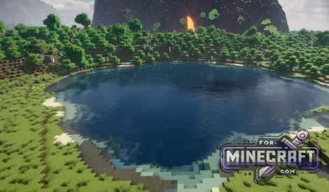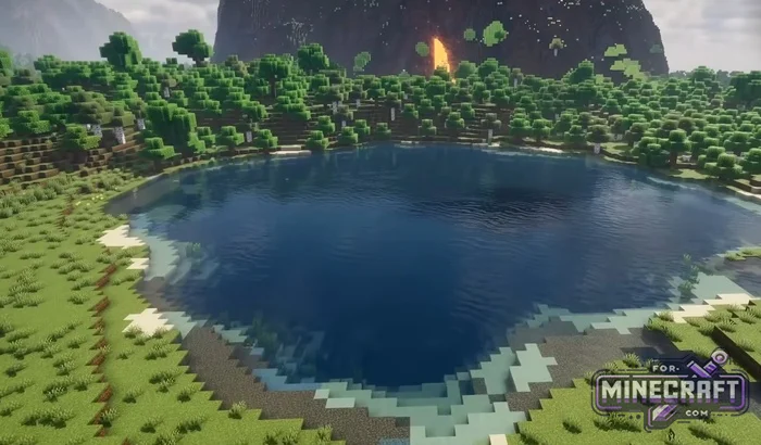 In addition to the lakes, there is a lava vein on the side of the plateau. This can be used as an entrance to a dungeon or a forge right in the rock. Around the plateau are round lakes with clean shores. For the most part you can fish there or simply use the water as a resource, its pretty convenient.