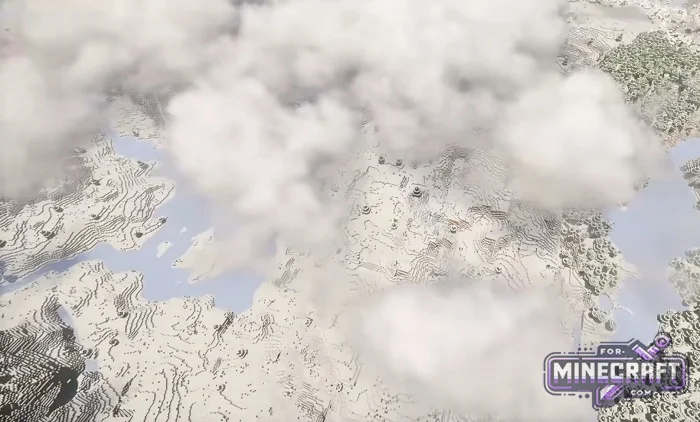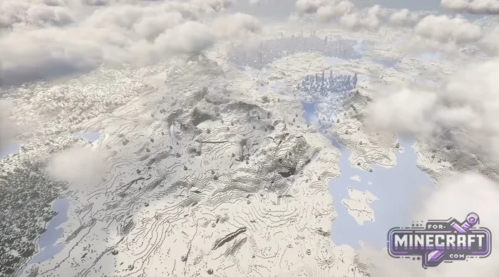 The entire landscape of this seed consists of endless snow covered territories, and according to measurements the region stretches for 45,000 blocks! Moreover, the terrain is filled with high mountains, valleys, and frozen bodies of water. Wherever you look you'll see snow forests and snow capped mountains.