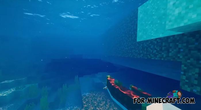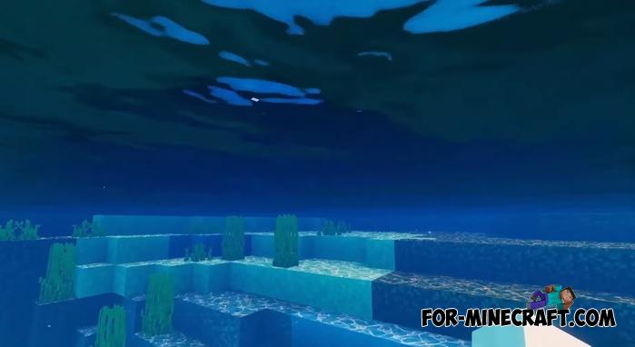Grass and trees show richer color without losing the vanilla style. Surfaces catch highlights, so blocks look more three dimensional. Metal parts gain a subtle shine. The water stays clear with a blue tint. You can see far, and the seabed shows flickering light that makes slopes and steps easy to read.![]()