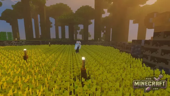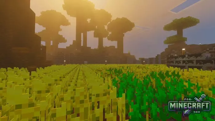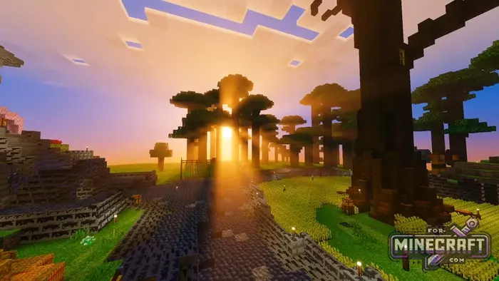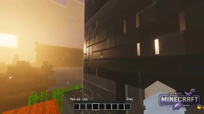 The shader demonstrates incredible work with volume. Instead of the usual fog, Super Eclipse Ultra provides a thick light haze, night landscapes are now not just dark but deep, and the light from the moon or torches is softly diffused. This is a complete overhaul of the enviroment in Bedrock Edition.