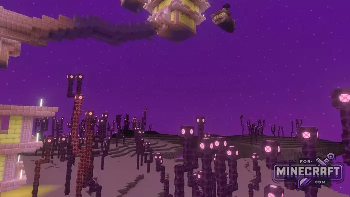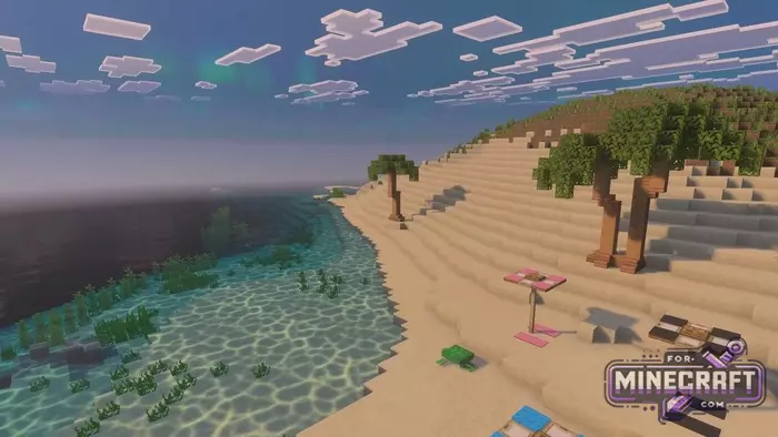 The water in Unbound deserves a special mention as it has gained reflections and caustic efects - those very light glare effects at the bottom that many are looking for in shaders for Minecraft Bedrock 26.0. At the same time in the tropics, the water appears transparent and azure, but in the swamps it retains its density and murkiness. Nezere and End have their own unique fog and lighting profiles for each enviroment.