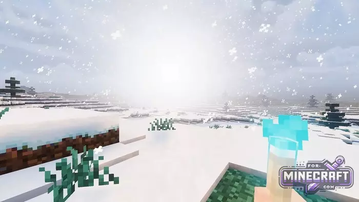 Celestia Shader works with a pale palette in Bedrock Edition 26.10 via VV. The shader focuses on warmth and saturation to give everything around it a soft light. This makes the image look deeper and the transitions between light and shadow look smoother. The shader also improves shadows, textures, fog and more.