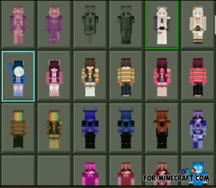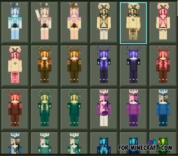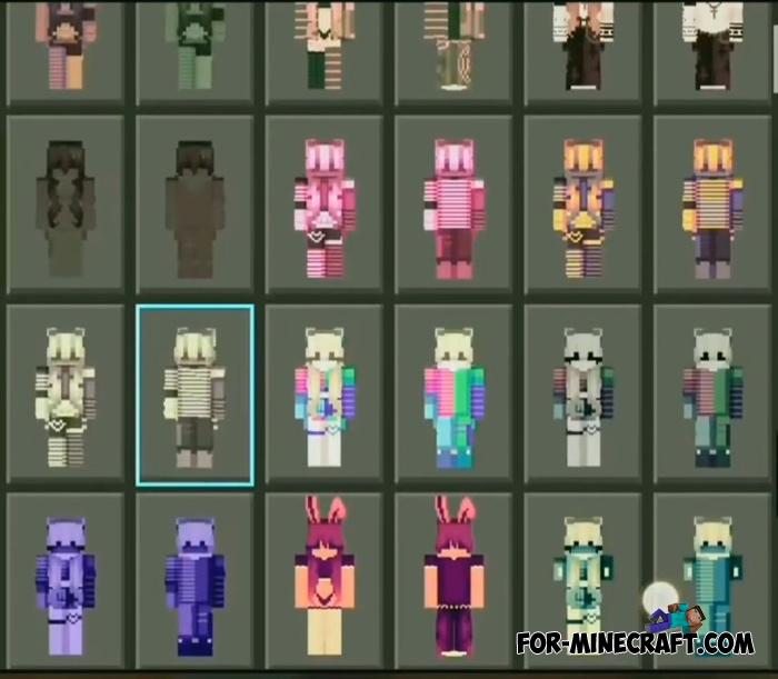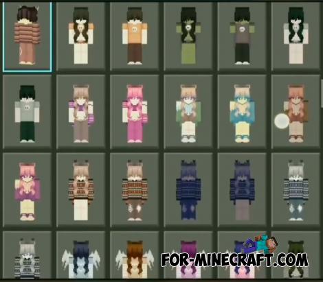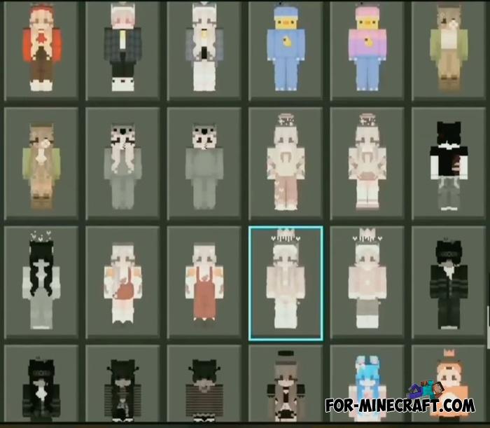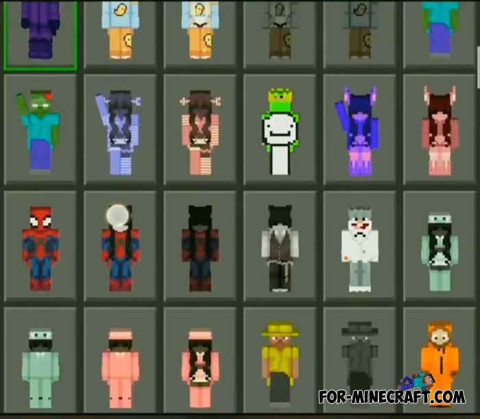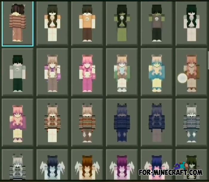 Today's pack of skins gives 1050 variations among which both male and female. For Android, download the already packed client for 1.21.62 (or your release if you have a special plugin installed).
