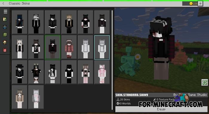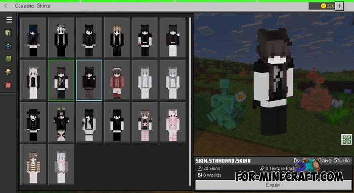 This collection is united by a single theme: a black and white color palette with elements of formal and casual wear, that's how complicated it is. Each skin looks like it came straight out of the pages of a fashion magazine, and you can try it on for free, but if you need a large skin pack for Minecraft Bedrock, then follow the link and choose the one you like.