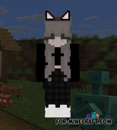 Some models resembles the old 4D skins from the BSF 4D Skin Pack. There are no protruding details that violate Minecraft rules, but the feeling of volume is still present thanks to elongated silhouettes, large ears, hats and neatly drawn accessories.