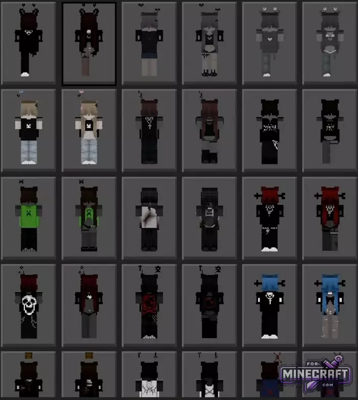 Almost every base skin in this set has a "twin" with a cape on its back. The set has been tested on version 1.21.124 and, for online enthusiasts it displays correctly on popular servers, including Hive. This pack will definetly appeal to players who want to recieve a darker visual enviroment.
