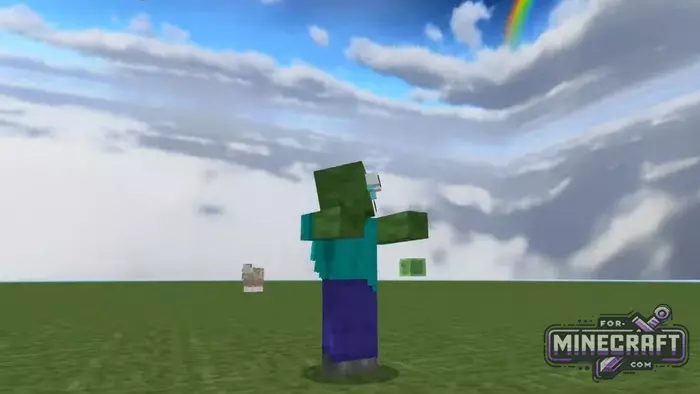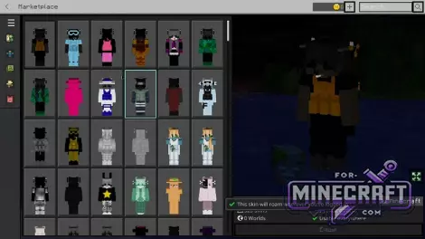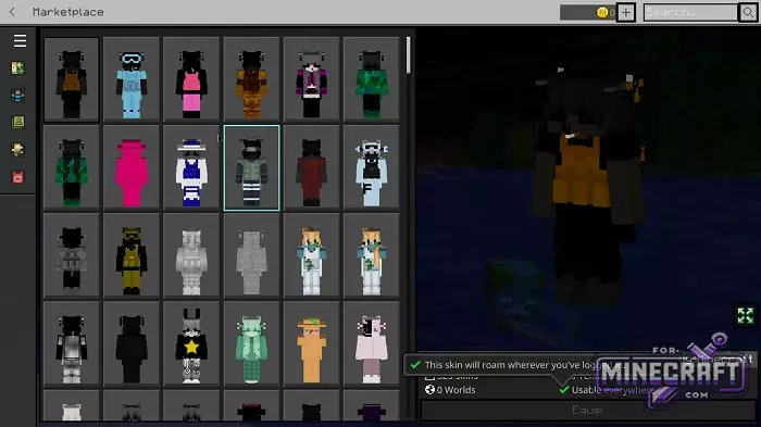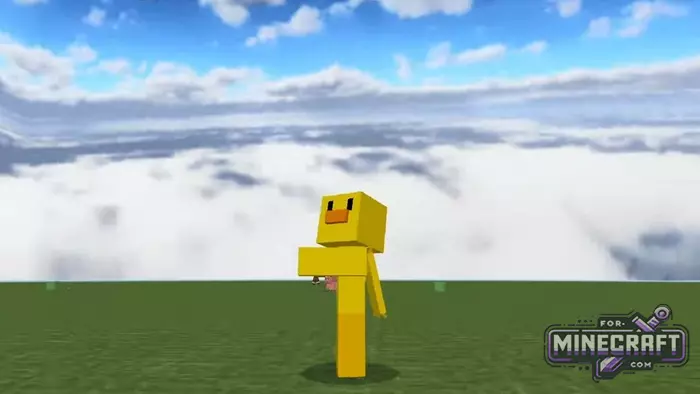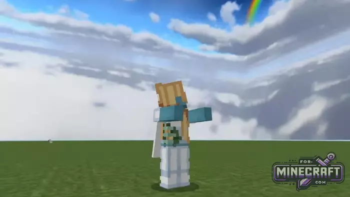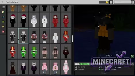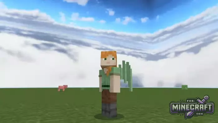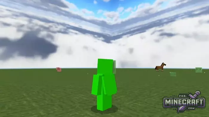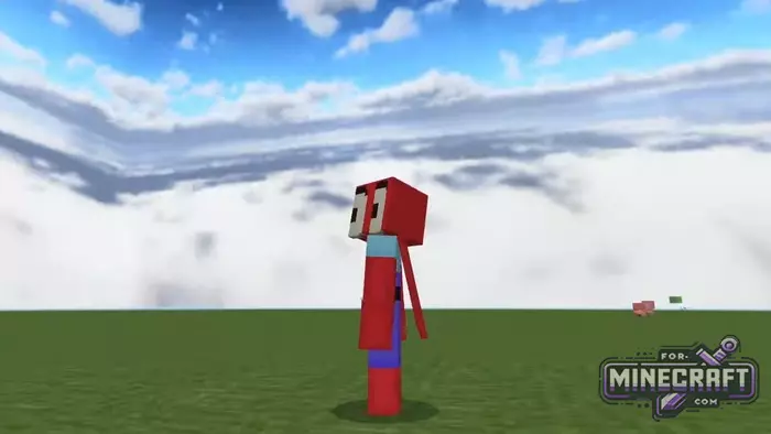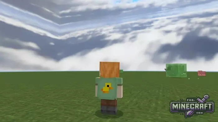 This skin pack works with geometry. It uses custom 3D models that change the character’s silhouette, including flat cardboard skins to voluminous animal and superhero costumes. Technically; this is implemented through additional rendering layers, so it can work on servers but it is prohibited by the rules.