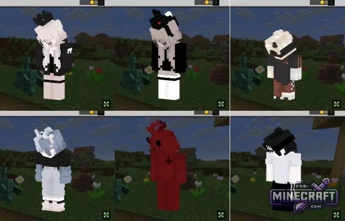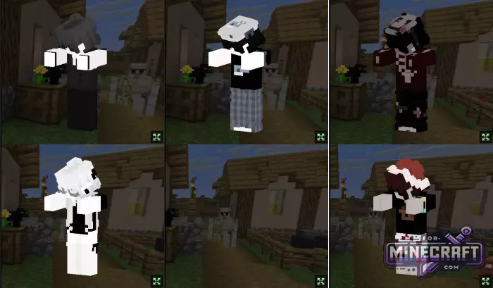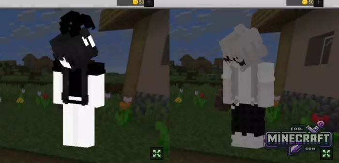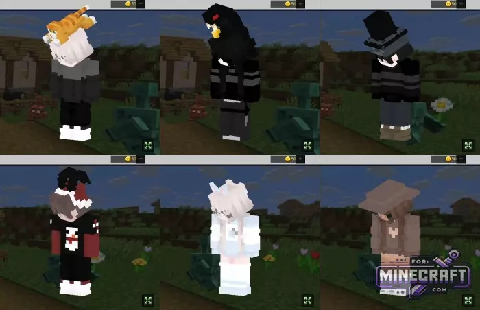 The pack is universal. It works equally well on smartphones and PCs, plus it is compatible with large servers, such as Hive. The collection includes everything from classic anime images to futuristic costumes with mechanical details you can easily recieve on most platforms.