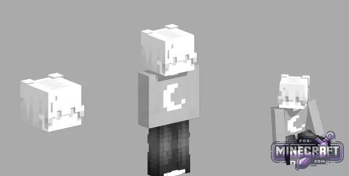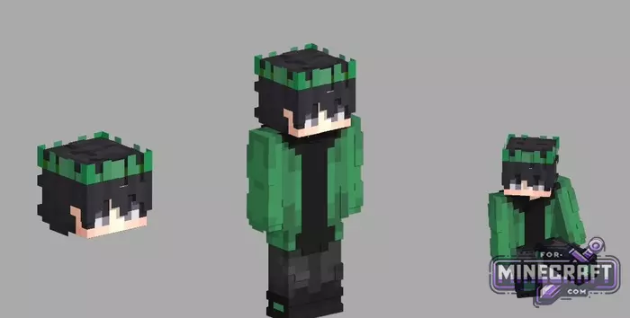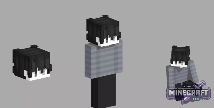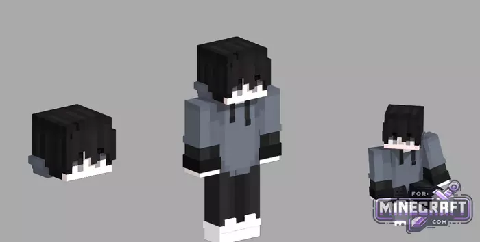 Three skins fall into this category. Eboy in a gray hoodie with black pants and white sneakers is the standart look. Eboy Emo wears a black outfit with a skull on the chest. The third option is a striped gray jacket and black pants