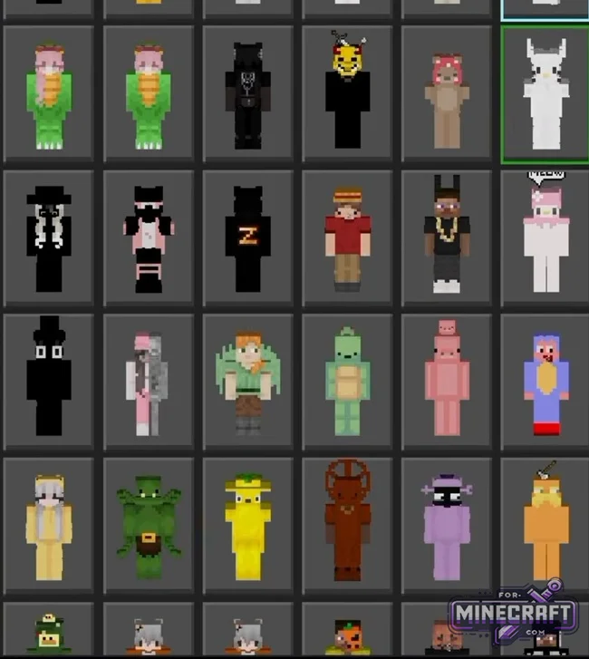The pack is suitable if you want to quickly add something unusual without searching through individual packs. Everything is in one file and works without any extra settings but if you want even more skin packs for Minecraft Bedrock 26 then download them from the link.