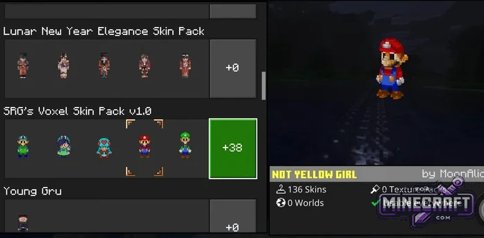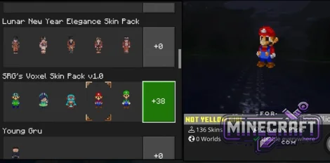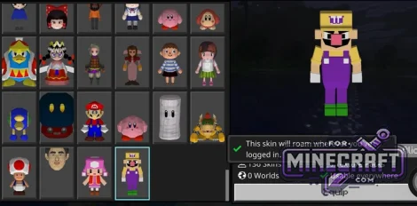 All-in-One 4D/5D Skin Pack is a collection of 140 unique models, including characters from popular games and animated series, as well as cosmetic items that are usually only found on large servers. There are characters from the Mario series with full 3D models of Yoshi and Wario. There is also Peter Griffin, characters from Final Fantasy, and mobs such as the Pink Wither.
