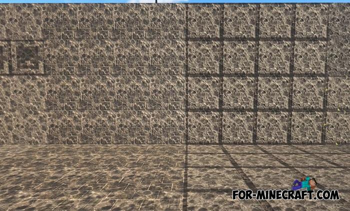One of the most impressive features aside from the ultra textures is the updated block geometry. This visually changes the surfaces of blocks, making them rough, with bumps and edges.