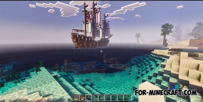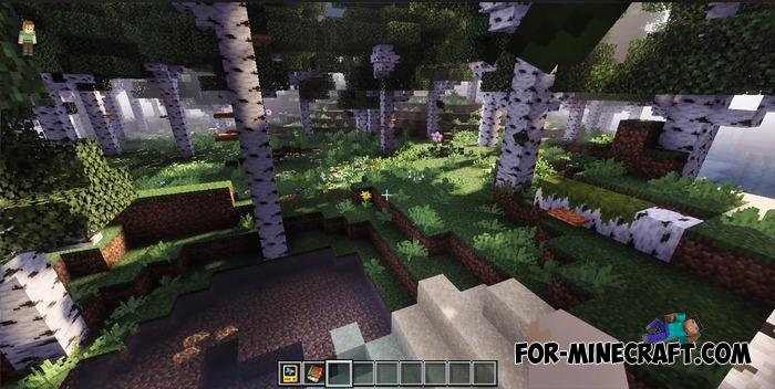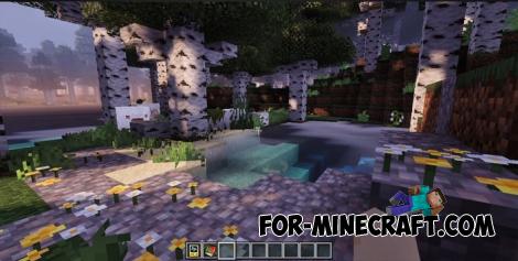 The pack emphasizes the natural beauty of MCBE. You can observe morning fog over the water, smooth transitions of light at dusk, and bright sunbeams breaking through the foliage, and surfaces now react to lighting, with water and sand looking particularly expressive. The new landscapes can be described endlessly; just take a look at the screenshots.