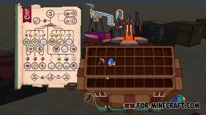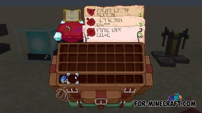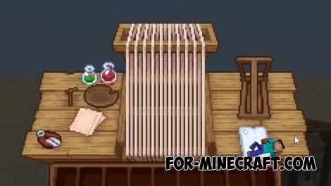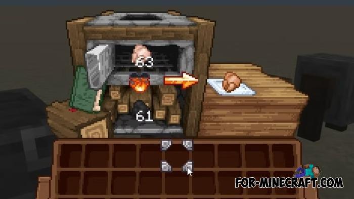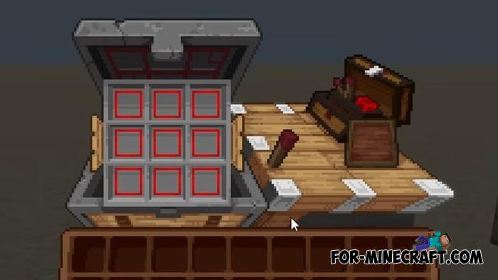 After installation, the familiar windows are no longer boring. The block menus look unique, especially when combined with resource packs for block textures and weapons, which you can download here. If your inventory is completely full of items, its of course a bit tricky to navigate at first.