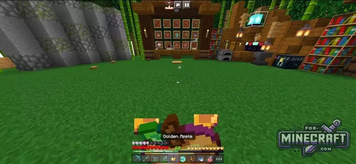 If you're looking for something between classic and modern minimalism, the Good Question pack is just what you need. Its main feature is its color palette, wich is based on a green hue combined with default textures. Now the blocks dont hurt your eyes, and the interface doesnt distract you from the gameplay. Overall, the pack is very pleasant and cozy, give it a try.
