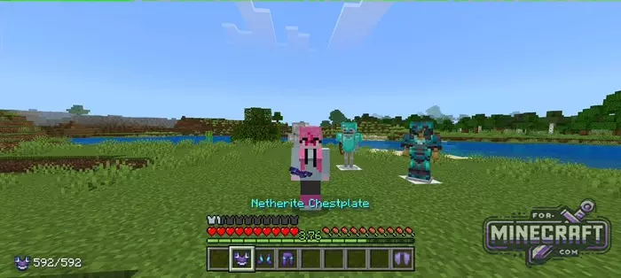 Invisible Player Armor works selectively. You and your friends on the server in Bedrock Edition 26.0 look light, but if you run into a skeleton in a diamond chestplate, you will see it. Unlike helmets and leggings, elytra stay visible. This is done for aesthetic reasons, as a character floating in the sky without elytra looks more like a bug than a feature.