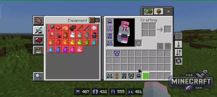 This pack has several advantages, the first of which is the ability to wear armor without covering your skin, and the second is the ability to hide your protection in multiplayer. Now you can run around with maximum protection, but visually stay in your favorite hoodie, dress, or any outfit from your skin. The trick is that the armor becomes invisible only on characters, while its properties and stats remain the same.