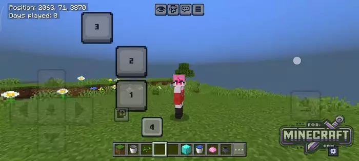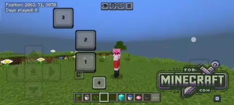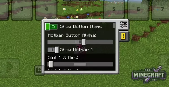 If you play Minecraft Bedrock on a touchscreen, you know how difficult it is to quickly switch to the correct slot during combat or building, so just forget about the standard item bar. Slot Hotbar Button or Custom Slot Buttons lets you move inventory control to any point on the display thanks to flexible settings and a handy menu.