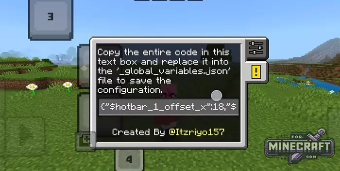 It's worth considering the technical point that the Bedrock engine cant save the position of custom UI elements permanently; To prevent your settings from being reset after re-entering, you need to copy the generated code from the text field in the game and paste it into the _global_variables.json file.