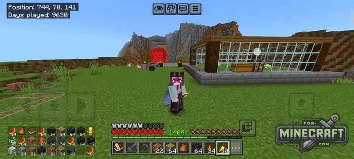 Instead of the usual empty space in the left corner of the screen, you now see icons for your resources. The pack can adapt to any situation and if you are building a farm, the item grid will help you keep track of your seed suply. The main feature is flexibility, and you decide whether its a 3x9 table or a mini-panel.