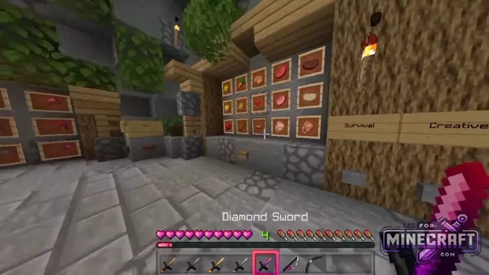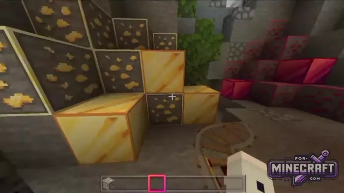 Resource gathering has become easier thanks to the changed ore textures. Now each block has a clear colored frame allowing you to instantly recognize gold or redstone even in a dark cave. Gold blocks are smoother and more shiny, while redstone ore pulsates with a crimson color.