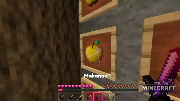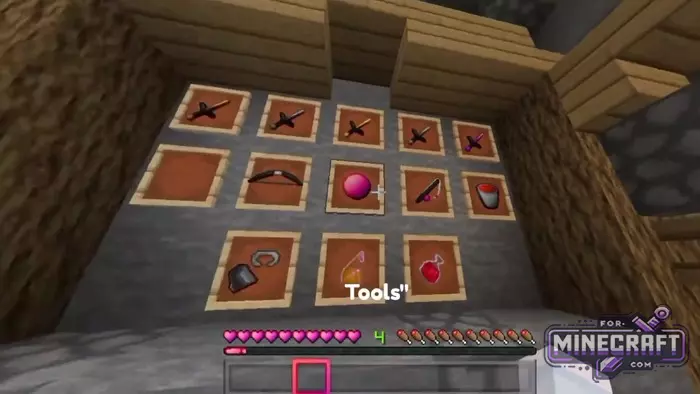 Pink Lemonate paints Bedrock 26.0 in shades of raspberry and lemonade, and the first thing that catches your eye is the incredible sky. Instead of the usual clouds overhead, there is a deep cosmic nebula in shades of pink. The entire interface, including health and food bars, is also adjusted to match the overall color scheme, with hearts now bright pink. Essentially, this is another PvP pack, but in 128x.