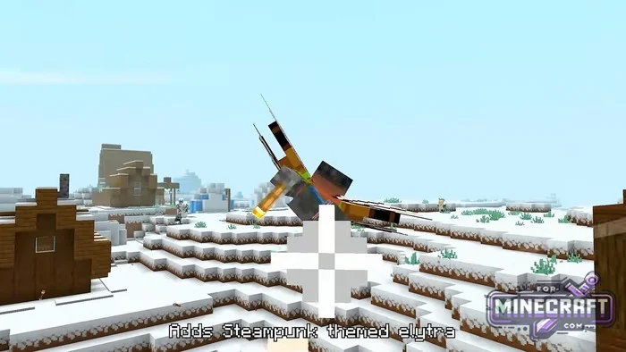 The pack affects three things: the elytra itself when worn, its icon in the inventory, and the broken elytra icon. Now you'll fly with distinctive mechanical wings that look like metal structures with wooden and golden inserts.